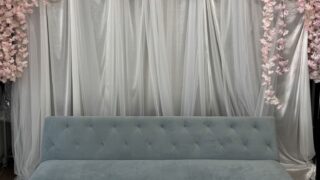 早朝に撮影室に新しいソファーを設営しました!