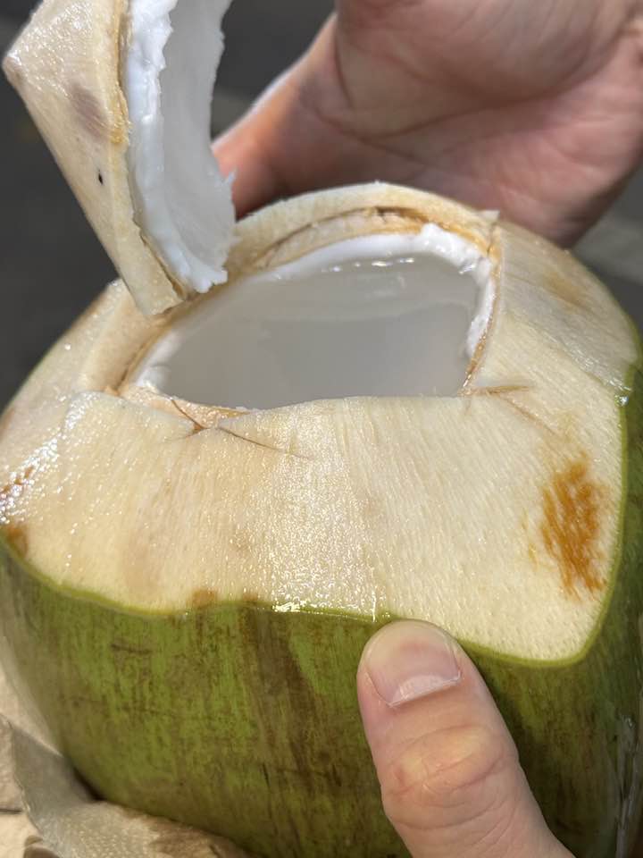 目の前で豪快にココナッツを割ってくれる様子は、