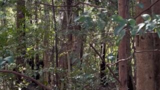 本殿へと続く参道では、木々の間から降り注ぐ光が、